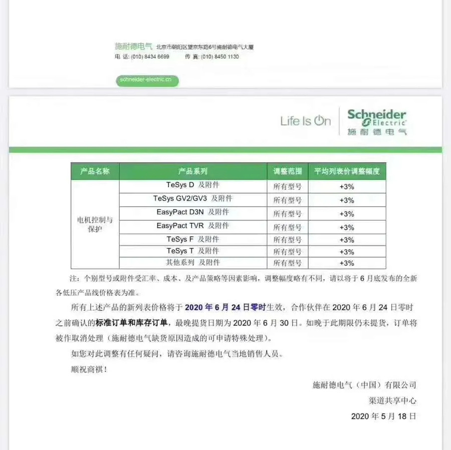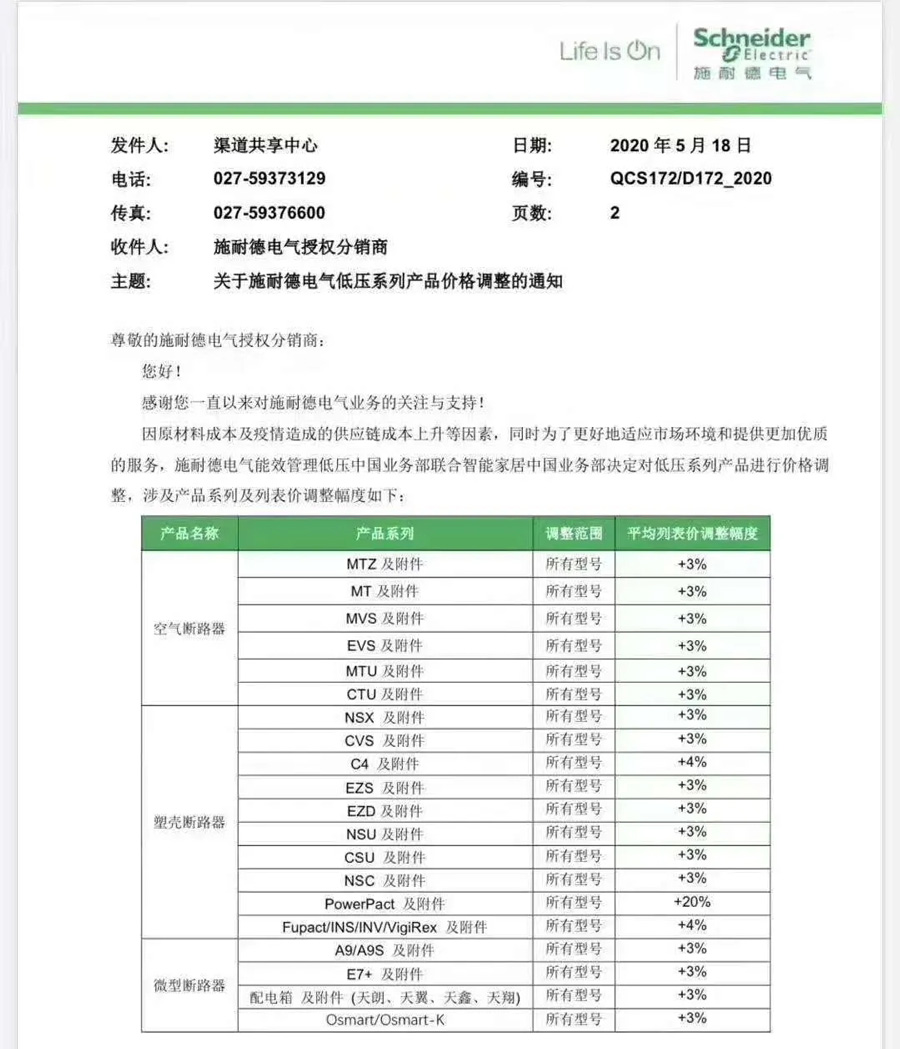關(guān)于施耐德電氣低壓系列產(chǎn)品價格調(diào)整的通知