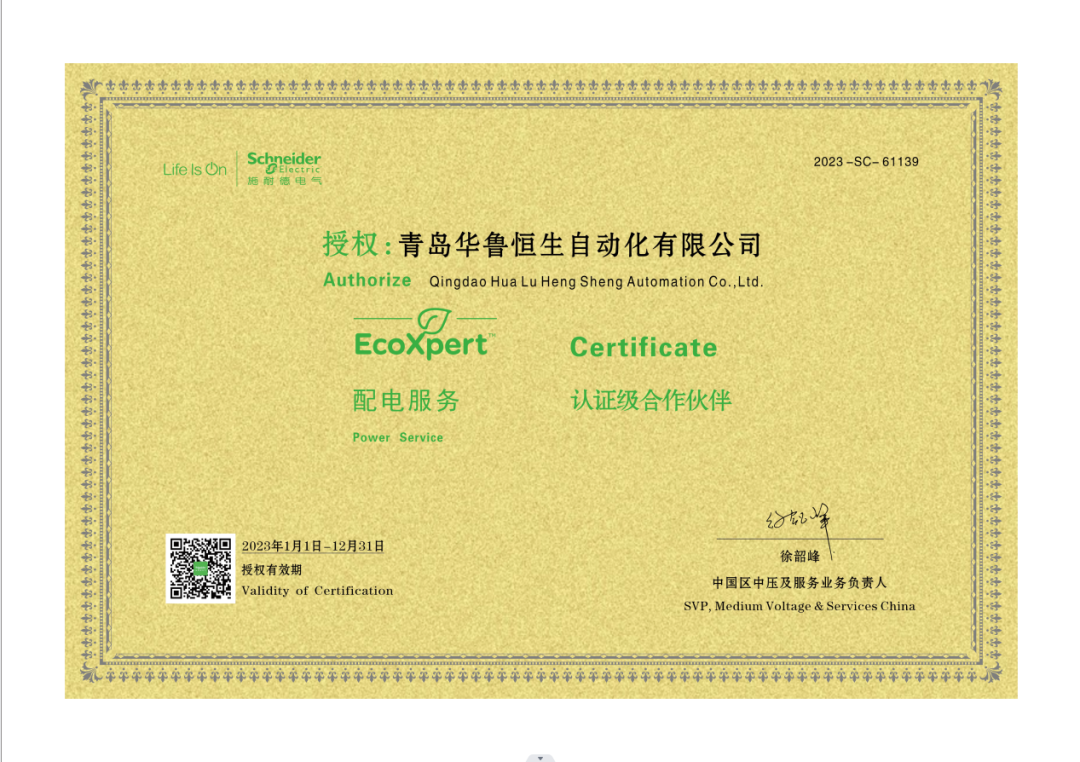 青島華魯恒生是施耐德山東地區(qū)核心代理商。青島華魯恒生不僅僅是施耐德自動(dòng)化配電傳統(tǒng)元?dú)饧拇砩蹋瑫r(shí)還是施耐德正規(guī)授權(quán)的配電服務(wù)認(rèn)證級(jí)合作伙伴。