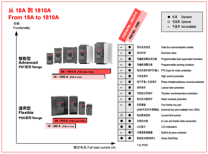PST30...PSTB1050 新推出的PST智能型系列軟啟動(dòng)器,涵蓋的電機(jī)電流從